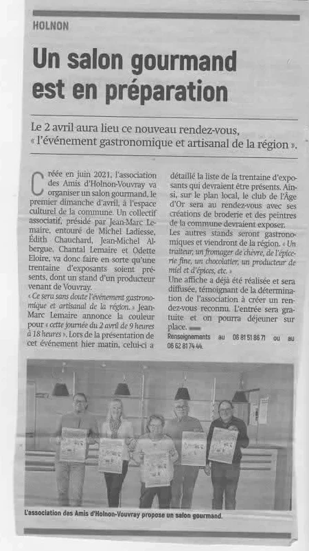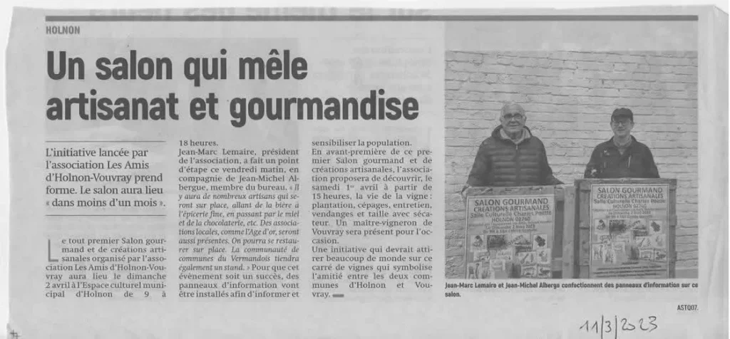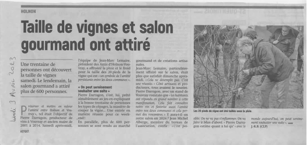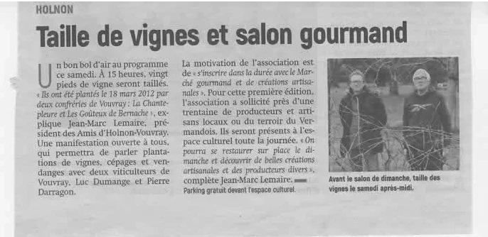 Une sélection de coupures de presse et une sélection de photos prises à Holnon et à Vouvray, témoignages de l’activité de l’association les Amis d’Holnon et de Vouvray.